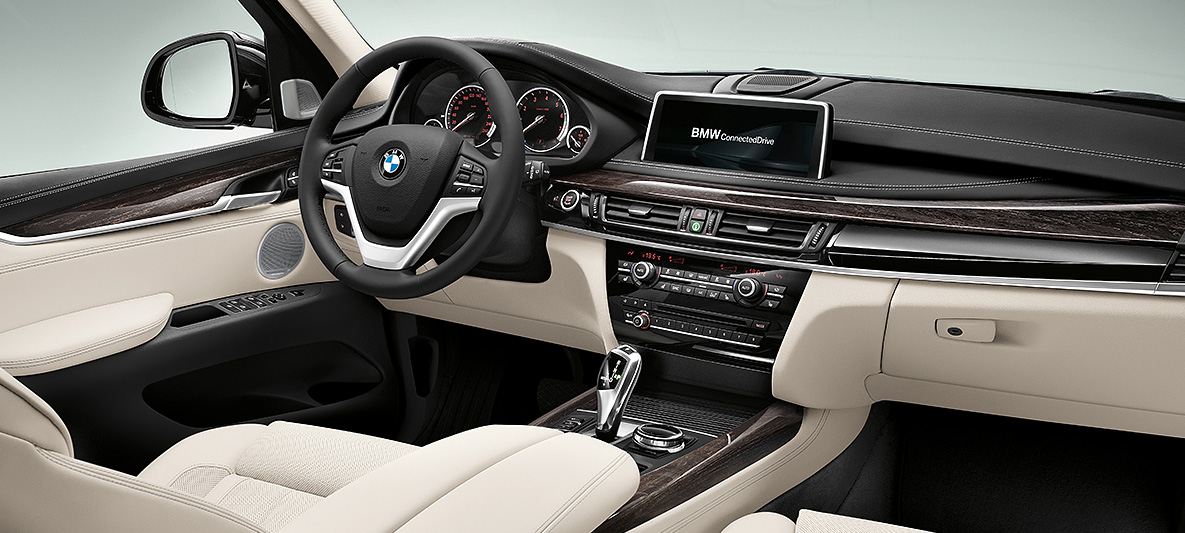 The interior of the new BMW Individual X5 is another exceptional proposition featuring materials of unprecedented quality and a unique sense of space, especially with the extended fine-grain Merino leather in five aesthetically arresting colours from BMW Individual. Only carefully selected, incomparably supple leather is put through a meticulous tanning process. The special character of BMW Individual leather can be seen in the fine detail. Refined decorative elements in the seat surfaces, stitching and piping in contrasting colours demonstrate yet another facet of hand-crafted perfection. The leather-covered instrument panel and the upholstery as well as the roofliner Alcantara create an unprecedented feeling of sophisticated quality inside the BMW X5.
